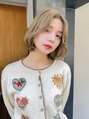 顔まわりを包み込む丸みと、毛先の自然なくびれシルエットがポイントの柔らかボブスタイル。明るめミルクティーベージュカラーで、肌映え・透明感もUP。ブリーチを活かしたやわらかい質感で、ラフに仕上げてもきちんと感をキープできます。