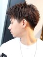 ナチュラルなツーブロックと刈り上げでスッキリとした印象を与え、パーマはエアリー感と躍動感をや与えます。パーマ強弱はご来店されてからご相談頂けます。