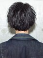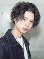 長めの前下がりセンターパート!ツイストスパイラルパーマでボリューム感を抑えつつも無造作なウェーブ感を再現!大人セクシーな雰囲気は勿論、男性らしいカッコ良さを是非お試し下さい!