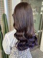 以前入れたあったハイライトに毛先のパープルが馴染むように色が入ることで上のブリーチしてある部分にもパープルが入り全体的に馴染むようなグラデーションに仕上げました^_^黒染めの履歴がありましたが綺麗に繋げました^_^