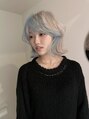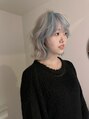 ホワイトブロンドとペールブルーデザインカラー(ブリーチ2回)