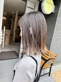 自然光できれいです。ナチュラルめのハイライトバレイヤージュ。褪色も考えて濃いめ、モノトーン、オレンジ、パープルでまとめてあります。