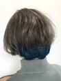 髪質、骨格に似合わせたショートスタイル☆全体をブリーチで3回ほど抜いたハイトーンヘア。インナーカラーをブルーにして人と違う個性的なヘアに。【気に入ったスタイルは「ブックマークする」ボタンを押して、ご来店時にお見せください】