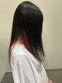 ロングヘアのインナーカラーですカラーの色は表面がダークグレーで暗めに設定インナーはビビッとなレッドオレンジでインパクトがありますねww