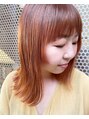 肩につく長さでぱつっと切りっぱなしロブ*顔まわりのサイドバングがポイント*ブリーチオンカラーならではの鮮やかで柔らかさのあるオレンジカラー*