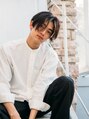 前下がりのセンターパートスタイルは 大人っぽくクールな印象に 顔まわりだけハイライトをいれることで まわりとすこし違うワンポイントにもなりますよ! 襟足とサイドは刈り上げてあるので、清潔感もバッチリのスタイルです。