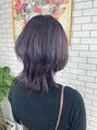 グレージュとラベンダーが入ってるのでくすんで落ち着いたラベンダーカラーになってます♪透明感カラーでさせて頂いてるので色落ちも発色も良いです!ブリーチ履歴2回です!ブリーチの必要な回数は髪質や履歴によって変わります!