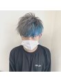ブリーチを、1回してから全体は綺麗なアッシュグレーに!サイドとネープは対角線上にサファイアを入れて人とかぶらないオシャレなヘアカラーに!