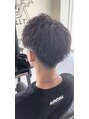 長すぎず短すぎないアップバングスタイル!カラーはトーンダウンのオーダーで黒染めではなく、紫色を使ってパープルブラックへ!