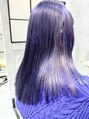 パツっとした切りっぱなしロブに透明感たっぷりのブルーラベンダーカラー♪ラベンダー系は髪を柔らかく見せてくれるので切りっぱなしでも重く見えず、相性◎こちらのカラーはブリーチ2回~が目安になります!