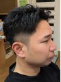 段差の短いツーブロックのスパイキーショートスタイルをご希望されました。クセ毛でかなり多毛のお客様なので長さも動きが出やすい長さとツイストセニングで軽さを出しました。フロントも立ち上がり易い様にしました。