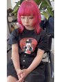 ウルフカット 派手髪 エンドカラー ピンク 赤 裾カラー ブリーチ