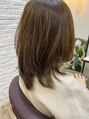 ミディアムのくびれスタイルからばっさりグラボブのスタイルに~♪切りっぱなしのボブのスタイルに比べて顔周り、トップがふわっとしやすいです(^_^)/N.カラーで艶感のある柔らかい質感の透明感カラーに♪