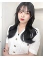 レイヤーロング/アッシュブラック/顔まわりカット/韓国ヘア