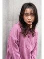 少しレイヤーを入れて動きのあるミディアムヘアにシースルーバングで今どき女子に!パープルブラウンで顔色もよく見えます♪