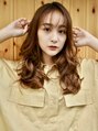シースルーバングと立体パーマで見せる大人可愛いロングスタイル。顔周りだけ少しレイヤーを入れてパーマの動きを中間まで引き立つように調整。