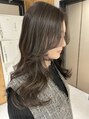 赤味のない透明感グレージュにロングレイヤーカットで巻いた時に動きの出るスタイルに◎32ミリのコテでリバースに巻いてます◎