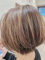 襟元をすっきりさせ、丸みを持たせたボブ。重みが出やすいバックを軽くして、もたつかず自然なシルエットに。