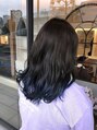 もちろん美白もしていない非加工写真です。5月にナチュラルにしなければならないという制限があるのでその前に遊んじゃおうという事で♪全体は馴染むようにイルミナカラーで毛先はブリーチした後にネイビーブルーを乗せました。透明感が出てクールな印象★