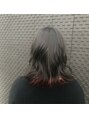 襟足にインナーカラーをお施術したお客様のバックショットです。ピンクレッドで春カラー ♪全体は黒髪のまま、襟足をカラー剤で最大まで明るくし、可愛いお色を乗せました。会社や学校でのカラー制限があったり、お肌が弱くてブリーチしたくない方でも!