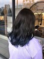 もちろん美白もしていない非加工写真です。5月にナチュラルにしなければならないという制限があるのでその前に遊んじゃおうという事で♪全体は馴染むようにイルミナカラーで毛先はブリーチした後にネイビーブルーを乗せました。透明感が出てクールな印象★