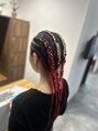 白髪×インナー赤残留しない落ちる赤で染めているので次のカラーの心配なし!高めに入れているので動いた時にいろんな表情を見せてくれます!コーンロウとの相性も抜群◎