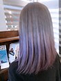 ブリーチ必須。グラデーションカラーで根本グレージュから毛先にかけてロイヤルパープルになるようにオンカラー。