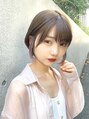女性らしさ溢れる丸みショートボブに♪キュートなピンクパープルのイヤリングカラーをオン!!さりげなく見えるイヤリングカラーは可愛さ倍増間違いなし!!お客様のスタイル、好みに合ったヘアやカラーを提案させて頂きます♪