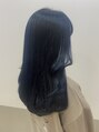 濃いめのネイビーブルーカラーです色味は深く濃いですが、一度ブリーチをすることで透け感や透明感を出しています