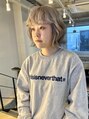 透けるような透明感のミルクティーグレージュ。こちらはカラー剤でダブルカラーをしています。ブリーチよりも傷まず、ワンカラーよりも圧倒的に透明感がでるので、現状の髪色が暗めの方、いつもオレンジになってしまう方はこちらがおススメです♪