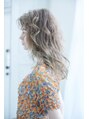 全体的に大きめのウエーブを作りふわっとさせエアリー感ミディアムスタイルです。 センターパートで分けているのでガーリーになりすぎない大人の女性感をだしています。 春夏にピッタリなさわやかなスタイルです☆