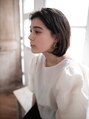 暗めのアッシュ系のカラーとショートめのボブスタイルで大人っぽい女性にしました!前髪をセンターパートで分けて、かきあげることによってより大人っぽさをだしました。全然はボブの重さを残して前髪は軽めにしました!