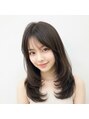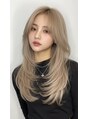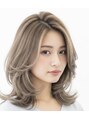 このスタイルはアイロンでウェーブ巻きにして顔まわりに空間を作り前髪のおくれ毛で頬を隠すことで小 顔効果が得られるスタイルになっております。表面を軽く巻いて動きをつけています。カラーはアッシュのトーンで少し暗めの印象になっています。