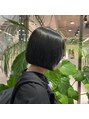 赤みのないダークなブルーグレーにボブカット髪質によってワンカラーでは難しい場合があります!細毛さん向きカラー!