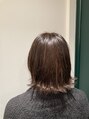 外ハネになりやすいようにバツッとカットし、イルミナカラーでアッシュ系に冬カラーしました。スタイリングは外ハネに巻いてらバーム仕上げです。