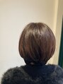 えりあしをスッキリさせて、前下がりな形にカットしたグラデーションボブスタイル!カラーもしっかり白髪もカバーしつつ透明感ある冬色に!トリートメントもしてツヤツヤに仕上りました。仕上げはバームです。