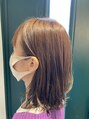 外ハネに巻いて仕上げたウルフレイヤースタイルです。カラー はイルミナカラーでブルージュに染め、インナーにハイライトをブリーチで入れました!トリートメントもしてサラサラに!オイルで仕上げました。