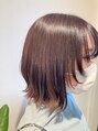 顔まわりにウルフの様な動きのある短かい髪を作った外ハネボブ。毛先をちょこっとブリーチして、イルミナカラーのトワイライトでピンクパープルに。