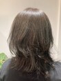 イルミナカラーのブルージュでオレンジ味を抑えた透け感カラーに。スタイリングがお洒落にキマる動きのあるウルフヘア。