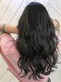 アッシュブラックカラーでクールビューティーカラー カットでは髪の毛が傷みにくいように重ためカット!スタイリングではカールの流れがきれいに収まるようリバース巻きで印象◎