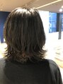 細い髪も少し表面にレイヤーを入れるとボリュームと毛先に動きがでます。カラーは間隔を開けたハイライトを全体を入れてその後アッシュグレージュを上から被せてました。表面を暗めにするとハイライトの立体感がでます。