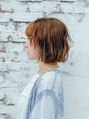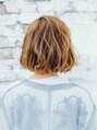 ボブスタイルの表面にうねりを付けて軽い印象に!カラーリングも透け感があるベージュブラウンにして全体的に柔らかい印象に!前髪はシースルーで抜け感を出しました。スタイリングはシアバターを軽く揉みこみ束感をつくりました。