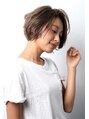 【気に入って頂いたスタイルは、「ブックマーク」をしてカウンセリングにお使いください】かきあげ前髪、パーマによる動きとアッシュ系カラーがクールな印象のショートスタイル。スタイリングが簡単です!