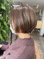 - カット+表面ハイライト+ワンメイクカラー、グレージュ、ショートボブ