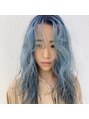 ハイトーンロングのデザインカラーです!ターコイズ×グレー のミックス!セクションで入れたグレーと根本のネービーが全体のエッジになってます!