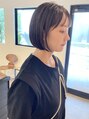 アゴラインのシンプルなボブ。ベーシックなスタイルですが、長さの設定や質感の調整にこだわって切っています。ひとりひとりに合わせた似合わせを。