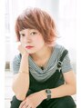 気に入ったスタイルは【ブックマーク】してカウンセリングにお使いください♪オレンジピンク系のカラー☆前髪眉ラインで毛先重め表面軽めに、全体的ショートボブで無造作な動きと外ハネ