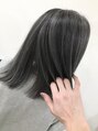 ブリーチ一回目安!細めのハイライトを全然的にいれて、中間色のプラチナカラーで仕上げ☆手ぐしでとかせば、キレイな筋感がでます!