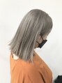 前頭ブリーチのホワイティアッシュ!ブリーチ2回目安、白髪染めからは3回目安!光に当たると白に近いアッシュグレーに