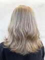 ケアブリーチ2回をしてフルカラーになります。ラベンダーを混ぜたペールラインでカラーしてあげることで理想のホワイト系カラーに☆